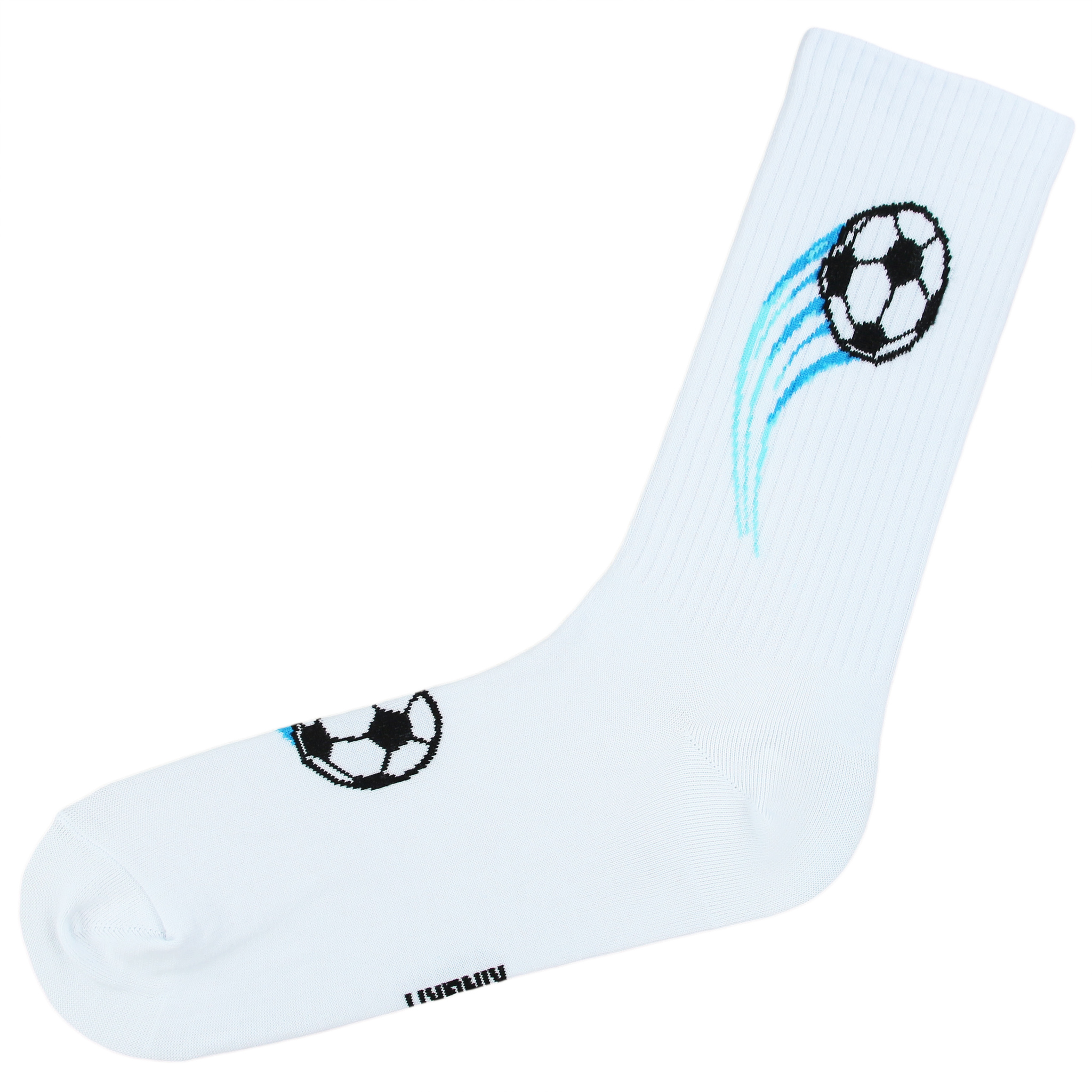Цветные белые носки с изображением футбольного мяча.