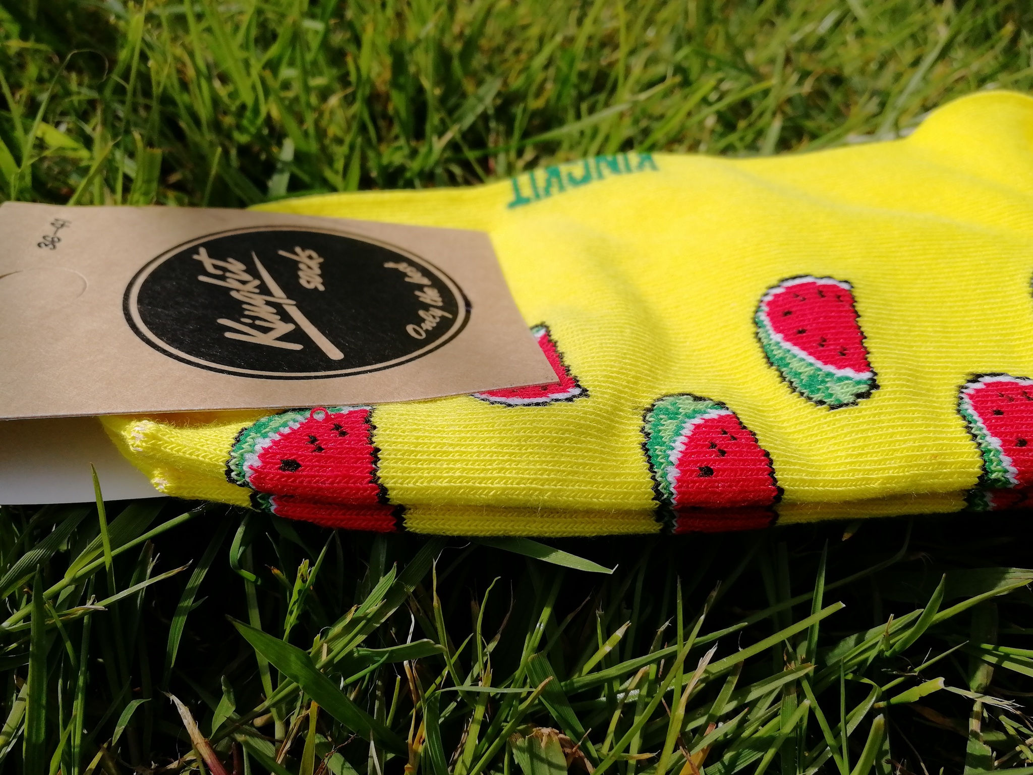 Комфортные хлопковые носки яркого желтого цвета с оригинальным принтом арбузов отлично подойдут для совершенно различного рода занятий: повседневной носки, длительных прогулок, работы в офисе, занятий спортом.