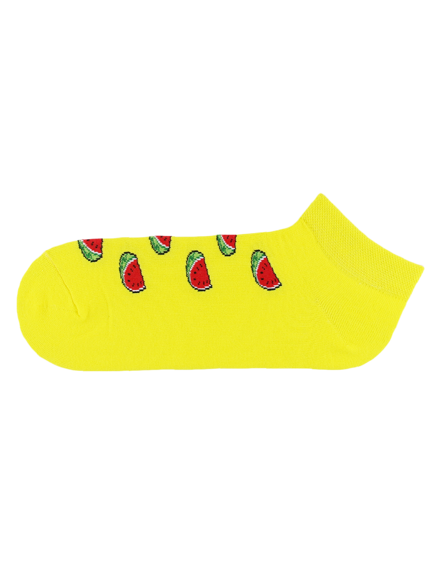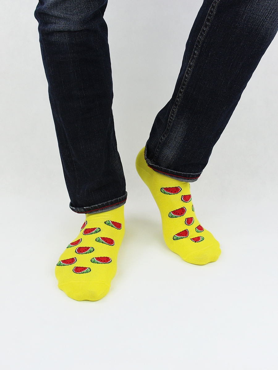 Цветные низкие желтые носки с изображением арбузов.