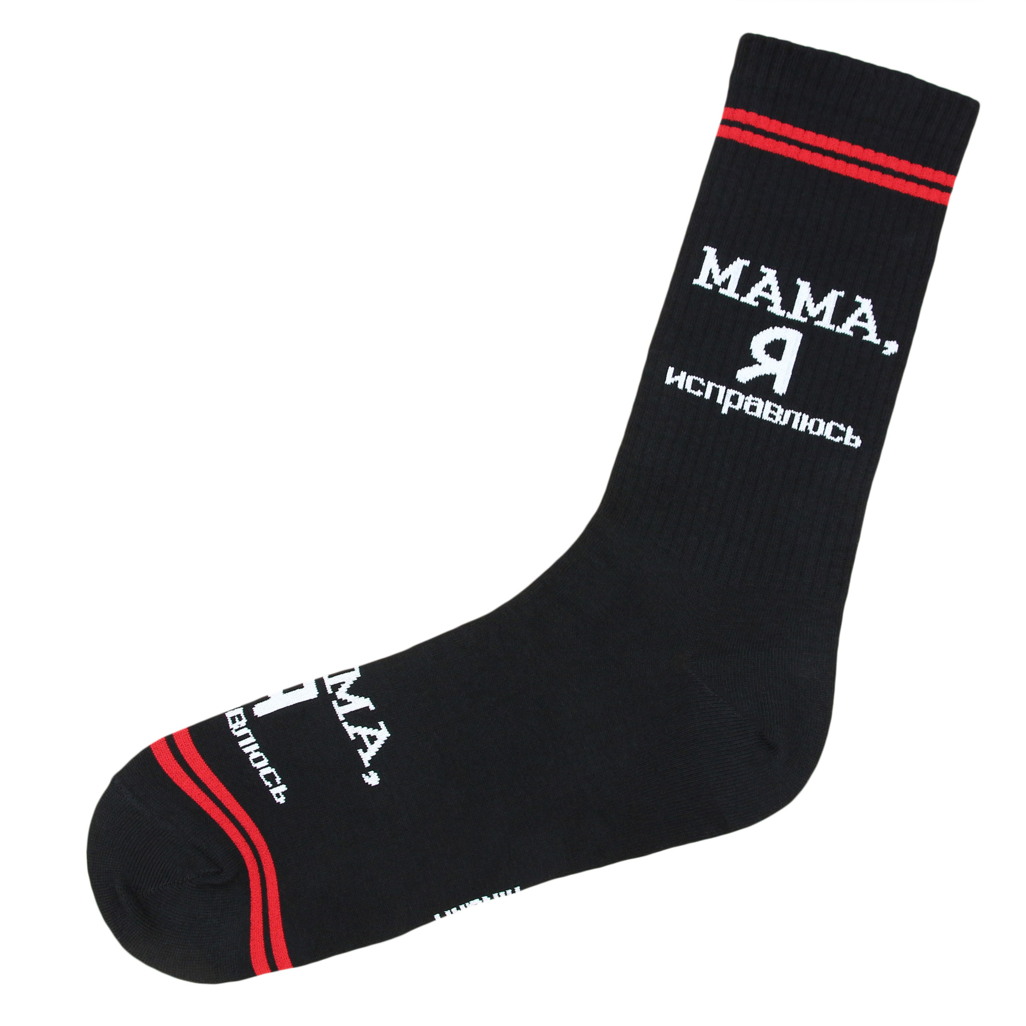 Носки с надписью МАМА, Я ИСПРАВЛЮСЬ черного цвета оптом.