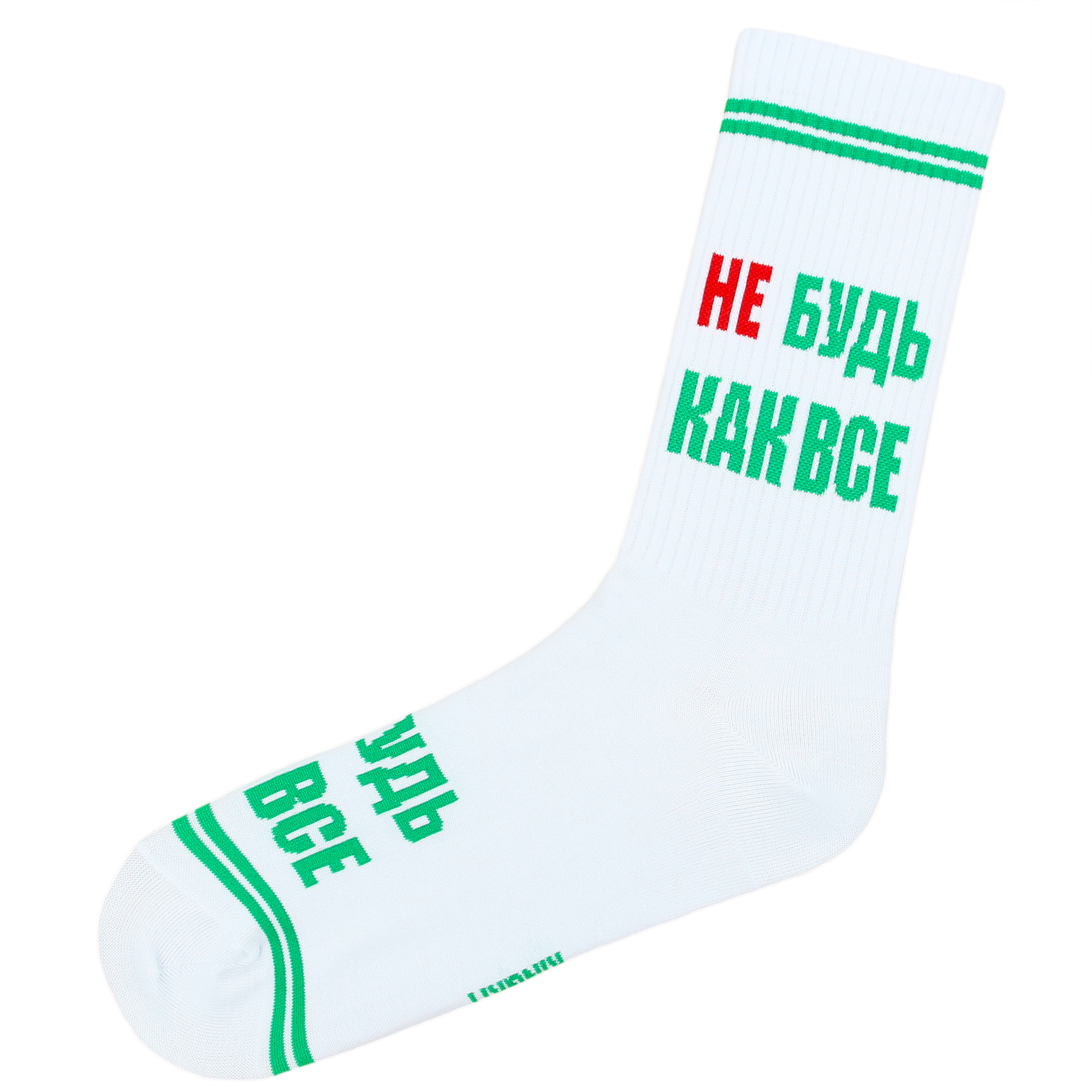 Носки с надписью НЕ БУДЬ КАК ВСЕ белого цвета оптом.