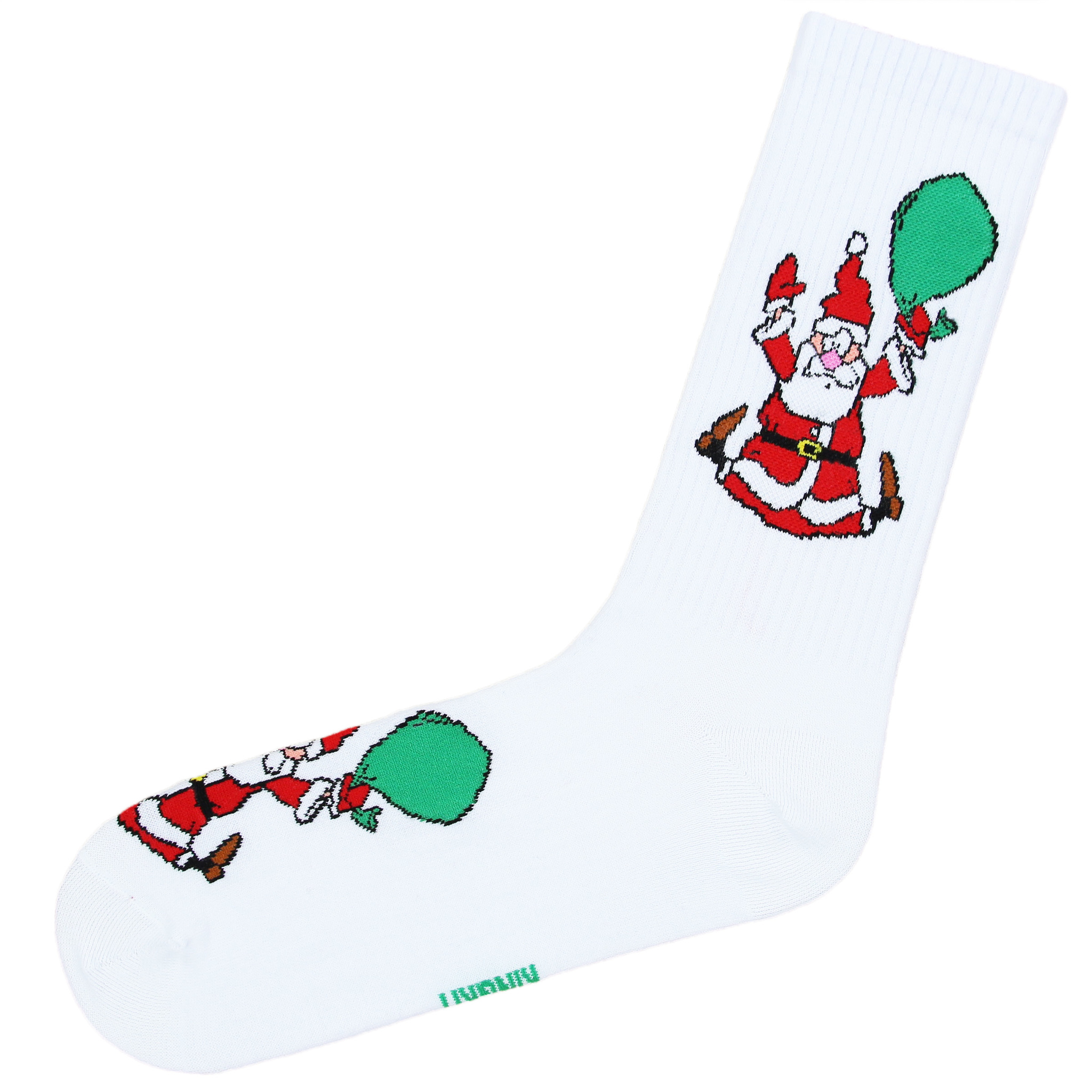 Носки с принтом санты с мешком белого цвета оптом.