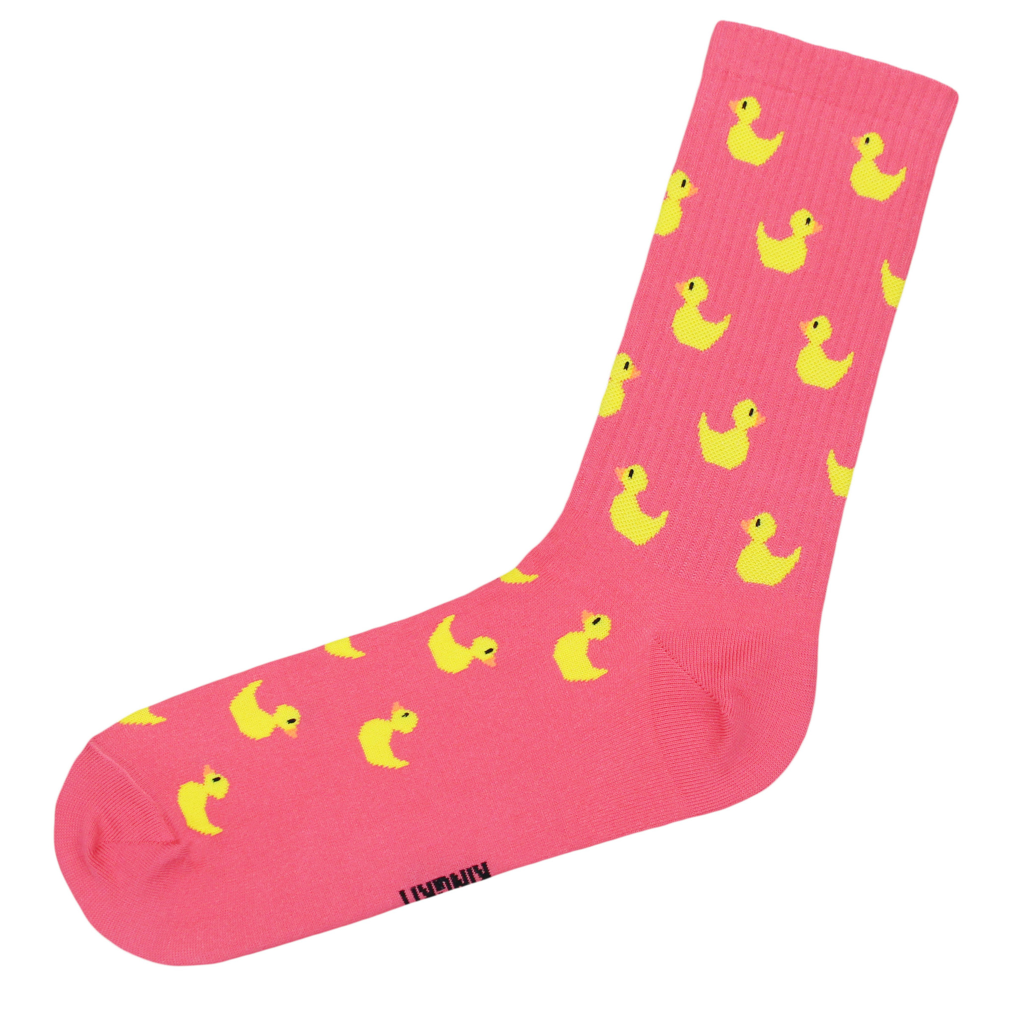 Носки с принтом уток кораллового цвета оптом.