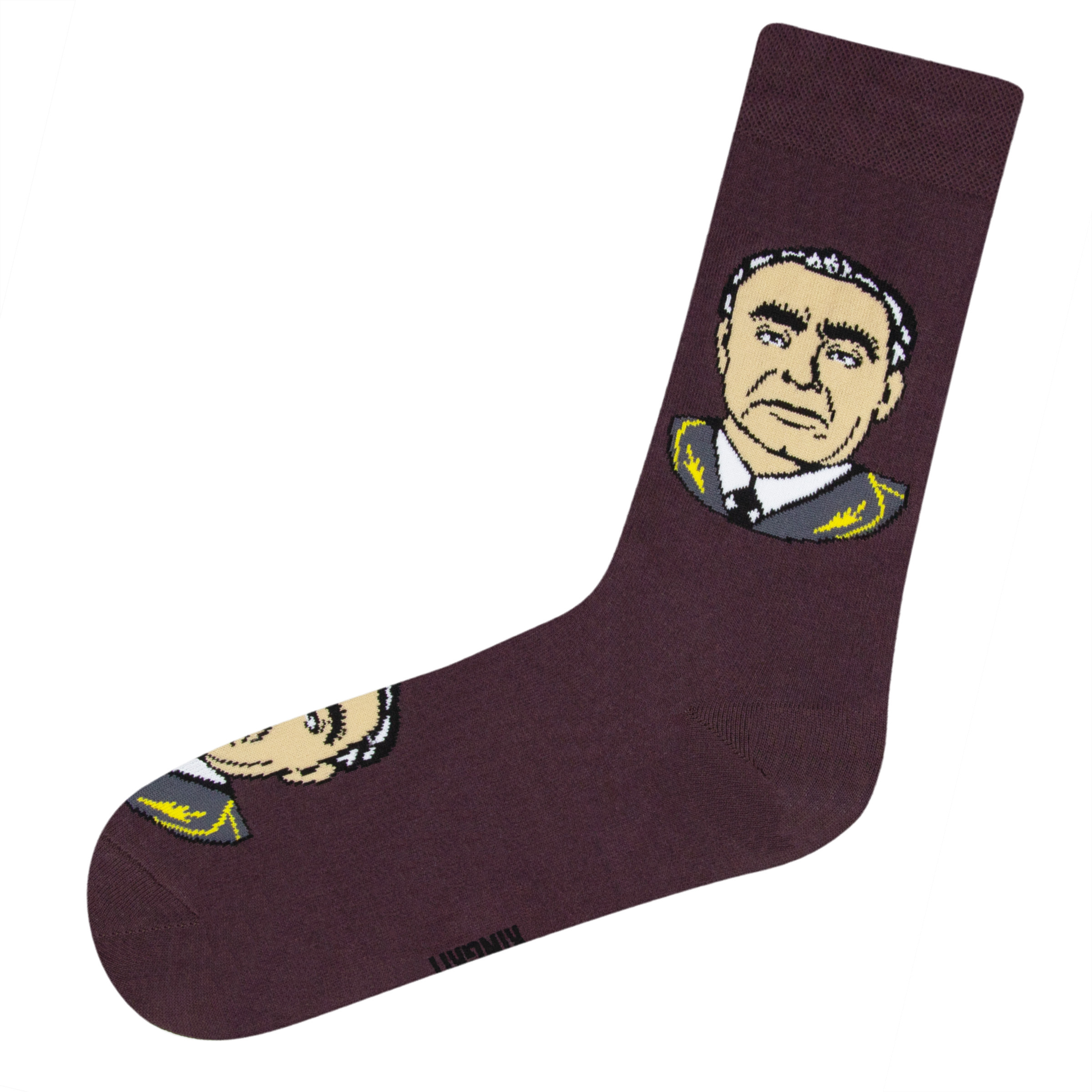 Носки с рисунком Брежнева коричневого цвета оптом.