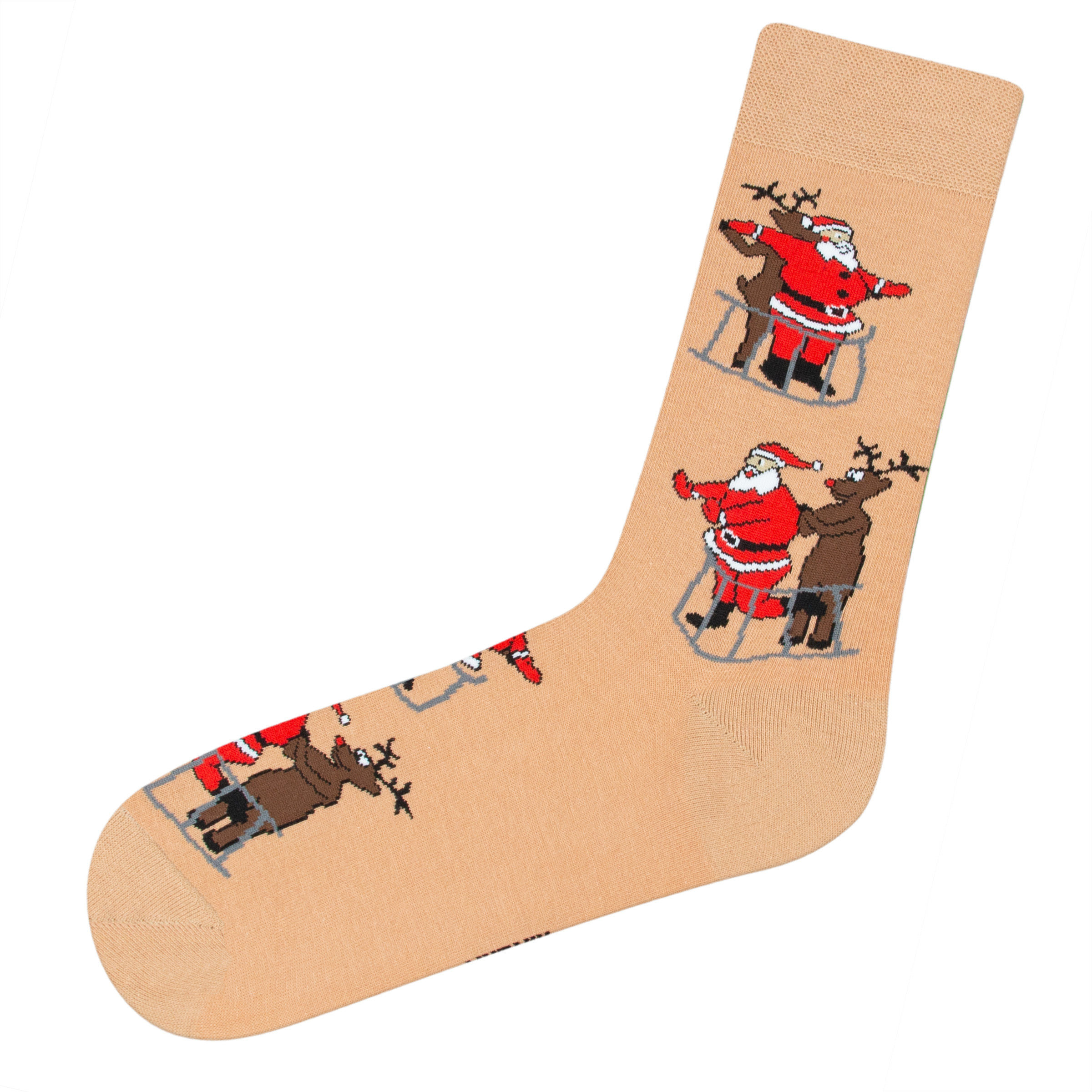 Носки с рисунком санты бежевого цвета оптом.