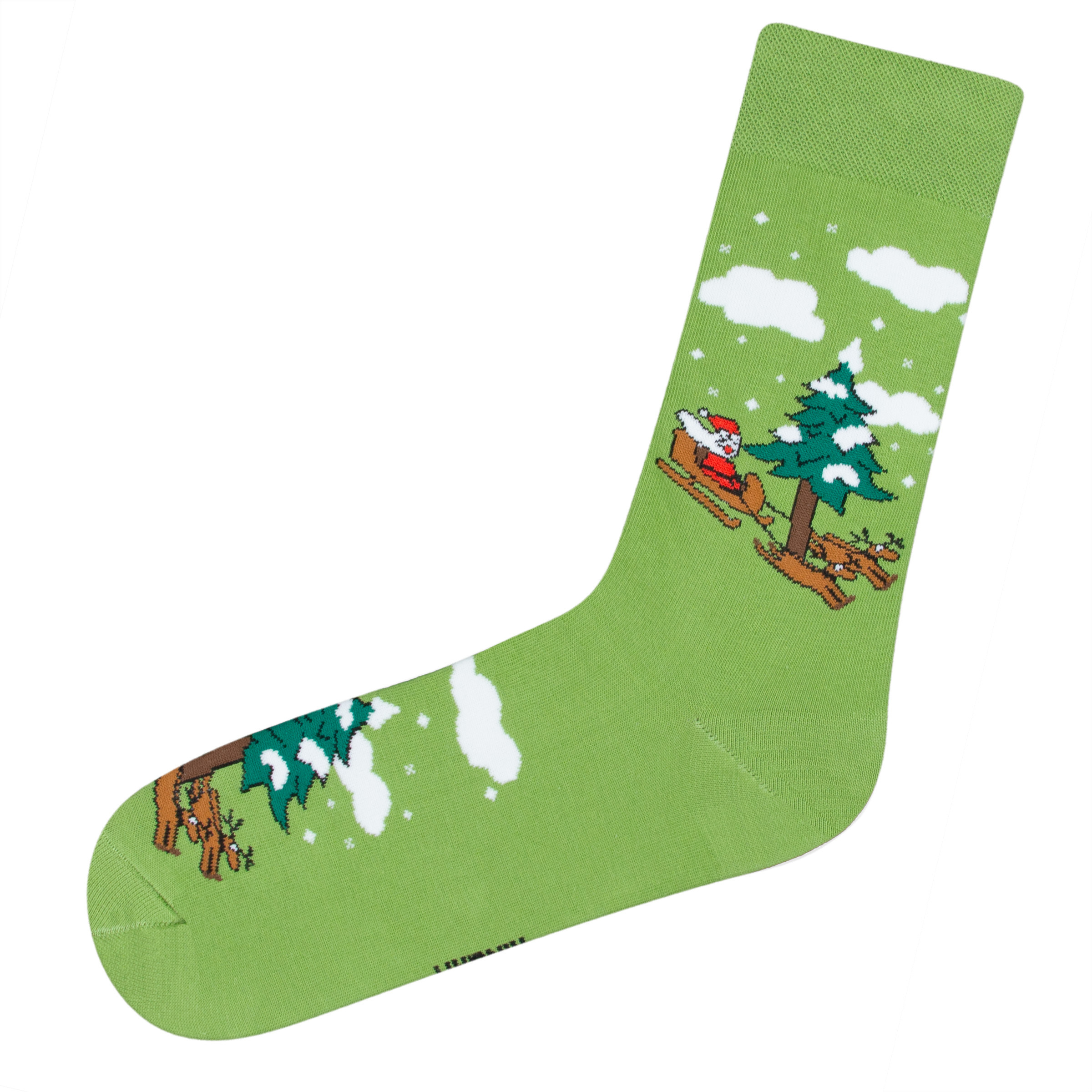 Носки с рисунком санты светло-зеленого цвета оптом.