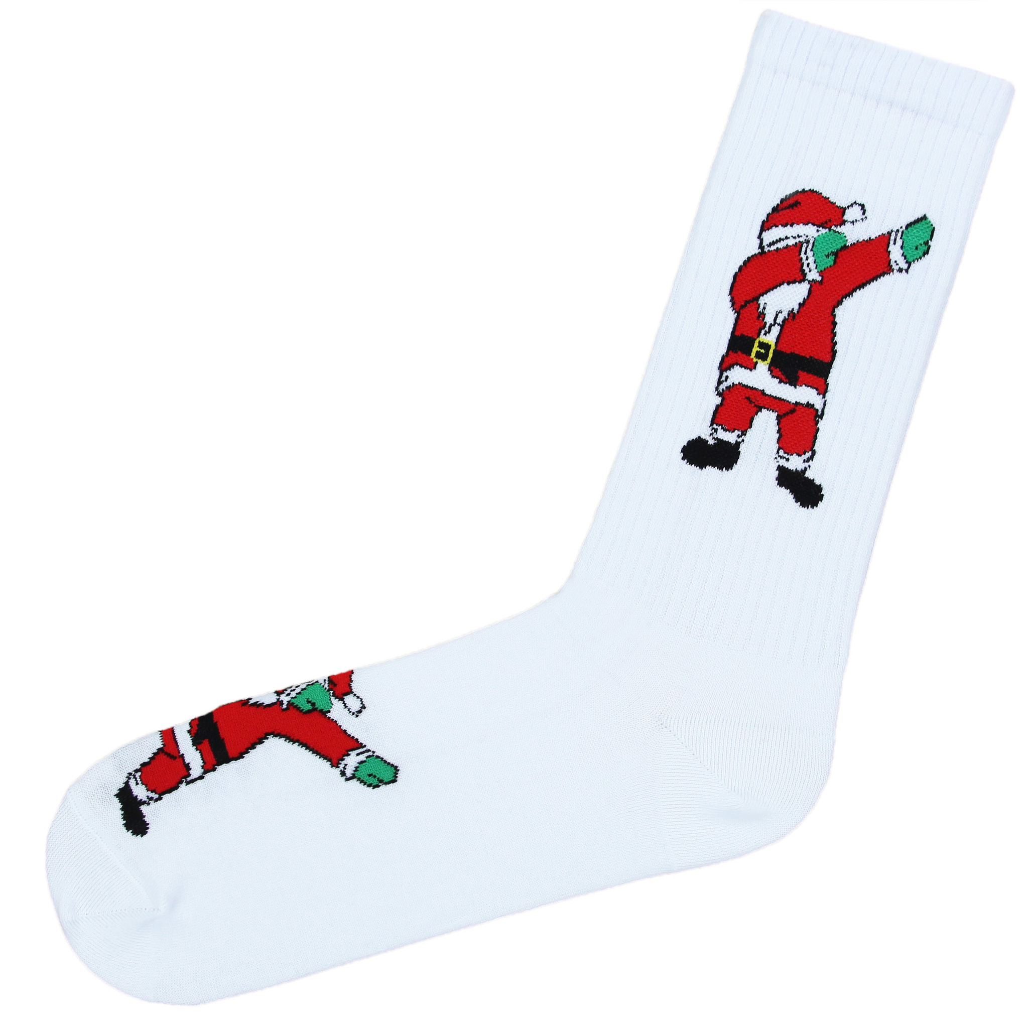 Комфортные хлопковые носки базового белого цвета с оригинальным принтом санты отлично подойдут для совершенно различного рода занятий: повседневной носки, длительных прогулок, работы в офисе, занятий спортом.