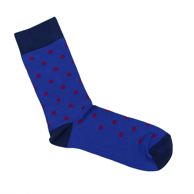 Комфортные хлопковые носки синего цвета в красный горошек отлично подойдут для совершенно различного рода занятий: повседневной носки, длительных прогулок, работы в офисе, занятий спортом.