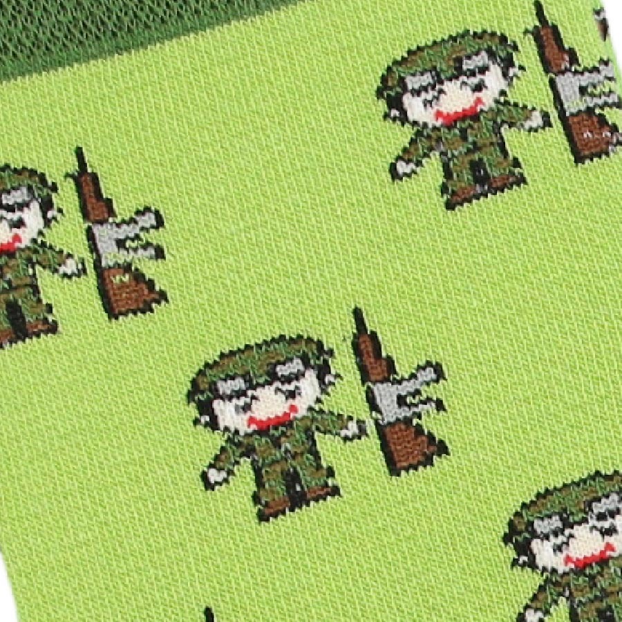 Комфортные хлопковые носки яркого зеленого цвета с оригинальным принтом солдат отлично подойдут для совершенно различного рода занятий: повседневной носки, длительных прогулок, работы в офисе, занятий спортом.