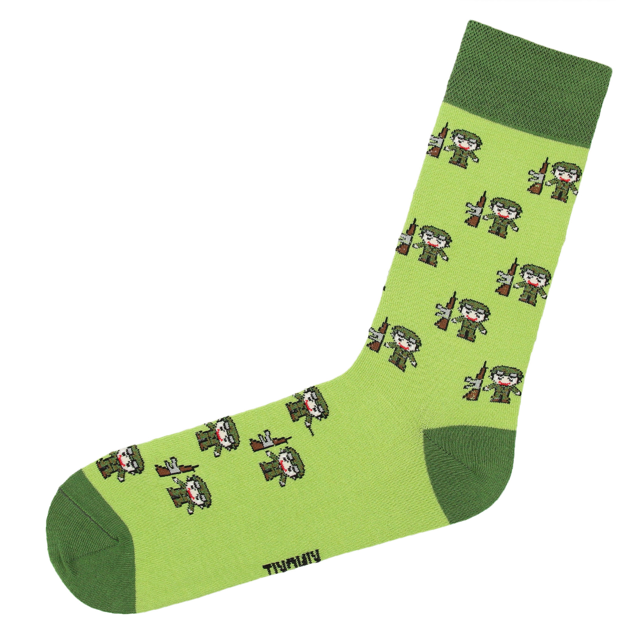 Цветные зеленые носки с изображением солдат.
