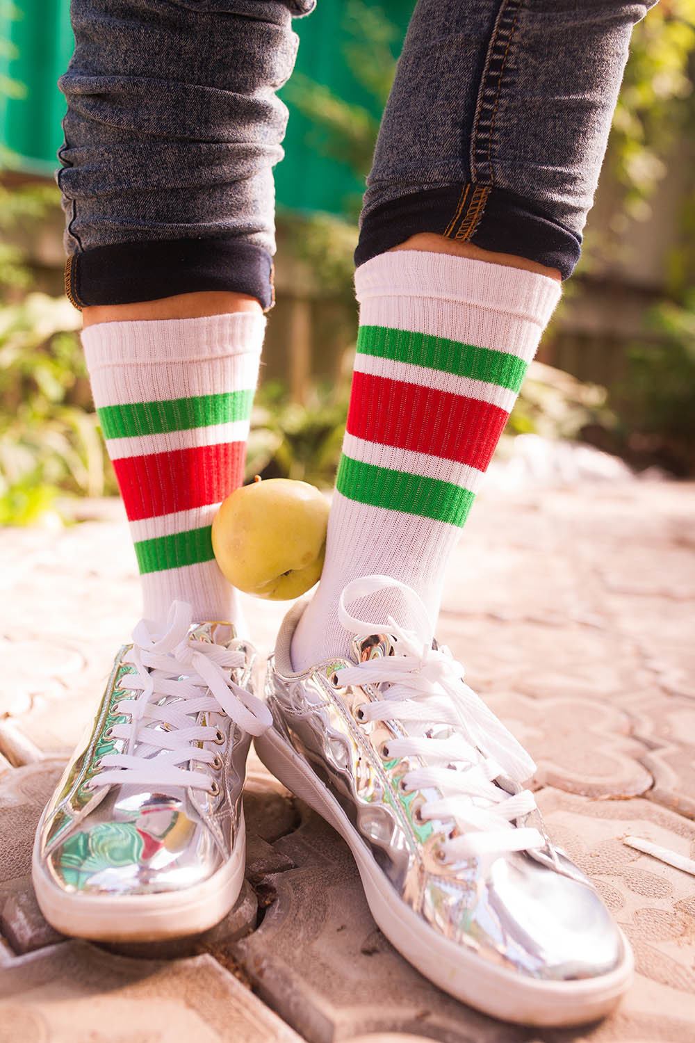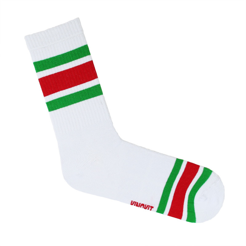 Цветные белые носки в полоску.